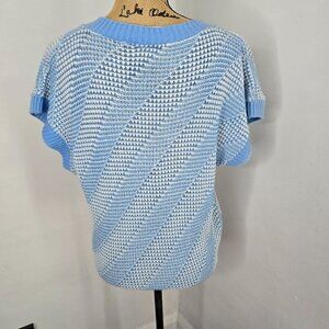 Vintage Blue Knit V-neck Slouchy Sweater Top