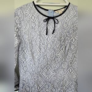 Vintage Blue Lace Shift Dress Bell Sleeves Size 10