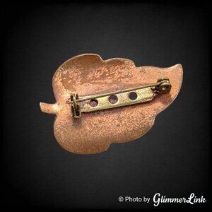 Vintage Blue Leaf Enamel Copper Nature Themed Brooch Pin