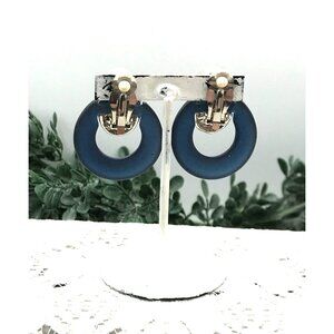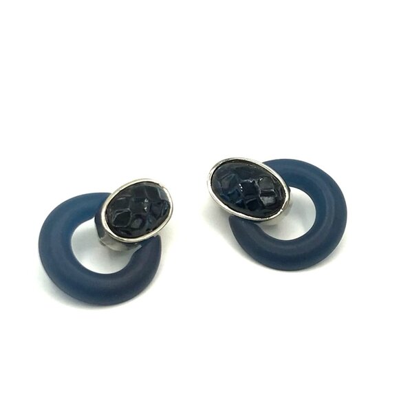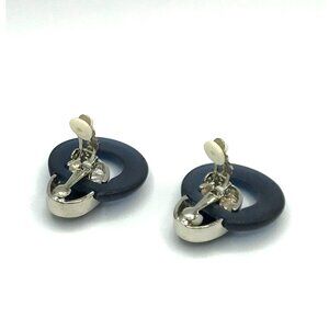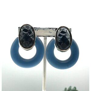 These elegant vintage earrings feature a striking blue Lucite hoop design, complemented by a faux black stone oval detail. Ideal for adding a touch of sophistication to any attire, these clip-on earrings are both stylish and timeless.