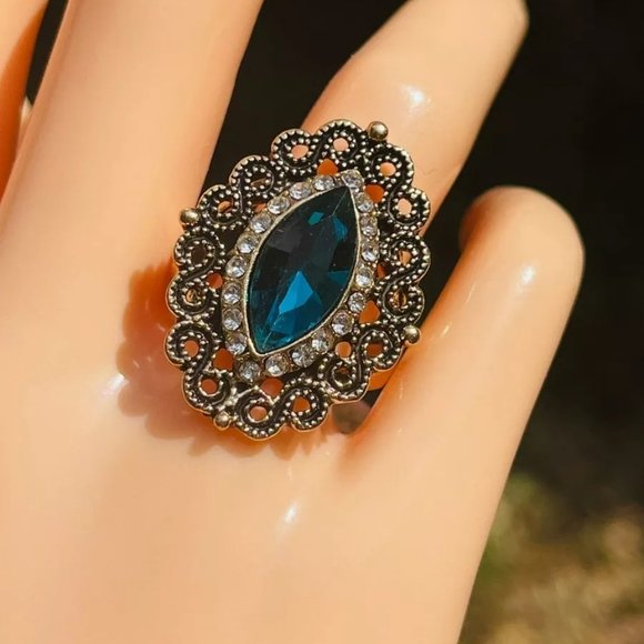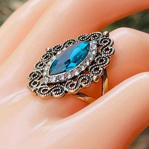 🌸 Vintage Blue Marquise Antique Gold Ethnic Ring