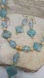 Vintage Blue Millifiori Glass Czech Glass Gold Shell Jewelry Set