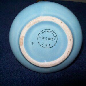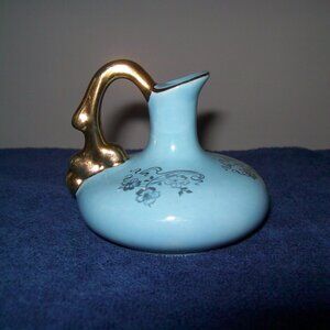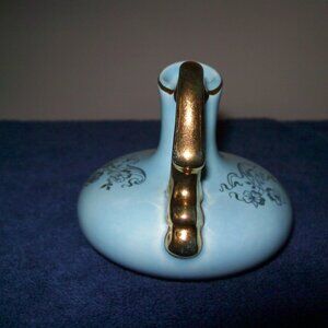 Vintage Blue Miniature Bud/Pitcher Vase 22K Gold Plating Handle Floral