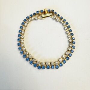 Vintage Blue Monet Signed & Unbranded Clear Tennis Bracelet Gold Tone Set