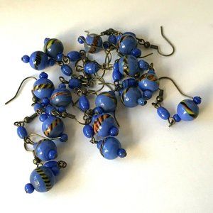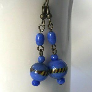 Vintage Blue Murano Glass Bead Earrings Dangle Montana Gold Plated