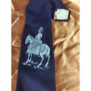 Vintage Blue Neck Tie Knight On Horse Warrior C1