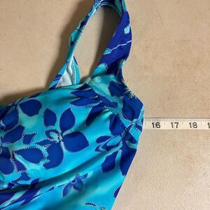 Vintage Blue One Piece Tropical Resort Swimsuit Small