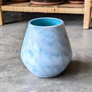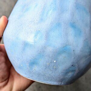 Vintage Blue Painted Wide Mouth Ceramic Vase