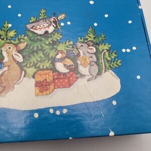 Vintage Blue Pencil Box Animals in Snow Hinged Lid Stationery Storage Old School