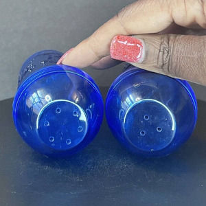 Spice up your dining experience with this set of Blue Plastic Salt and Pepper Shakers. Stands at 3.75 inches tall and weighs 2 ounces. Made of durable plastic, these shakers are perfect for daily use and will add a touch of whimsy to your kitchen or dining table. Unbranded and made in China.