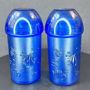 Vintage Blue Plastic Salt And Pepper Shakers With Fish Design
