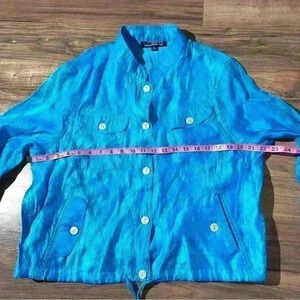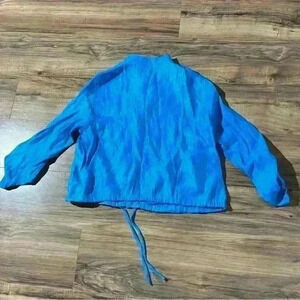 Vintage Blue Polyester Windbreaker Pullover Buttons Pockete Shirt Top Blouse XL