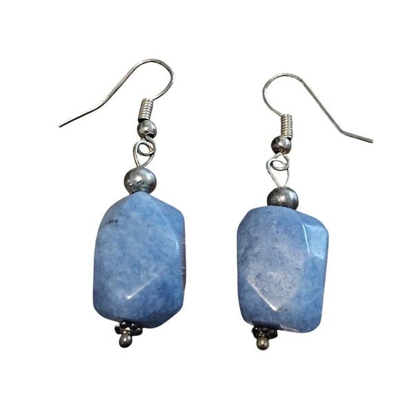 Vintage Blue Quartz Earrings Dangling Drop Gemstone Pierced Jewelry Classic Boho