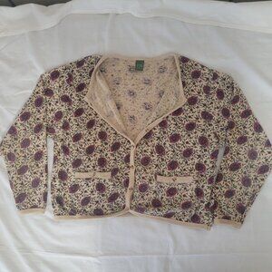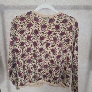 Vintage Blue Red Flowers Cardigan Sweater Outback Red The Limited Size M 1980's