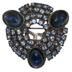 Vintage Blue Rhinestone Cabochon Silver Tone Brooch