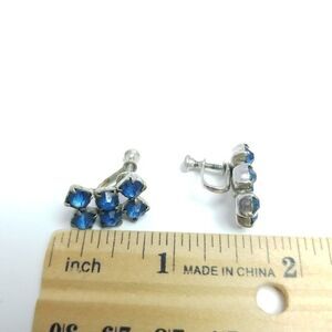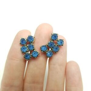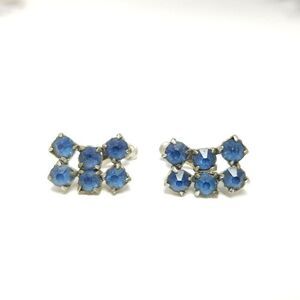 Vintage Blue Rhinestone Cluster Clip On Earrings, Screw Backs, Retro Estate