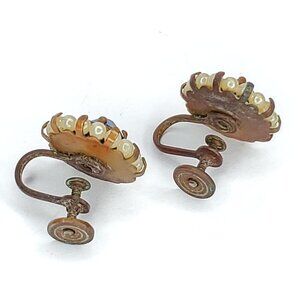 Vintage Blue Rhinestone Faux Pearl Earrings Screwback 5/8"