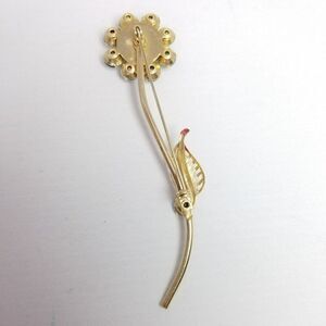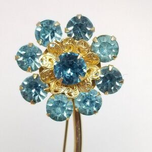 Vintage Blue Rhinestone Long Stem Flower Brooch, Gold Tone Setting, Estate