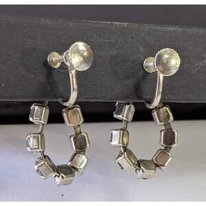 Vintage Blue Rhinestone Silvertone Loop Dangle Screw back Earrings Subtle