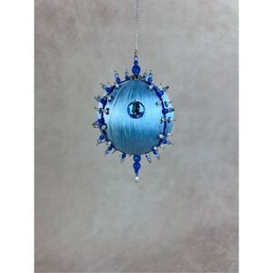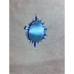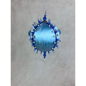 Vintage Blue Satin Pin Ornament 🎄 Handmade GVC, no major flaws or missing pins noted Measurements in photos Smoke free home