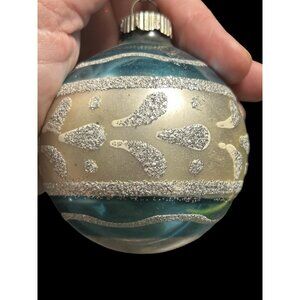 Vintage Blue Shiny Brite Hand Painted Silver Glitter Glass Christmas Ornament 3"