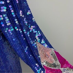 Vintage Blue Silver Pink Check Plaid Beaded Sequin Glam Cocktail Dress Party