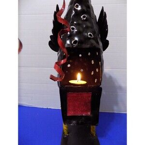Vintage Blue Sky 2002 Metal Rustic Rooster Chicken Tea Candle Sculpture Country