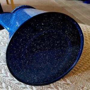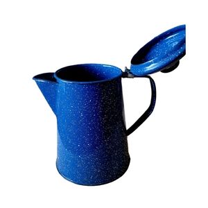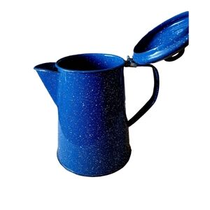 Vintage Blue Speckled Enamel Ware Cowboy Coffee Pot Kettle Camping 10"