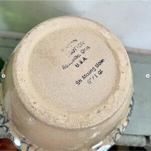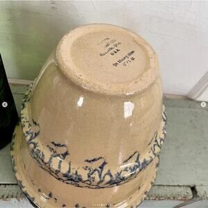 Vintage RRP Robinson Ransbottom Roseville (Ohio) blue sponge ware spatter mixing bowls with wheat motif.