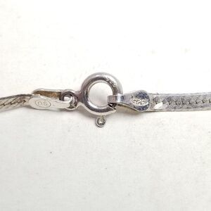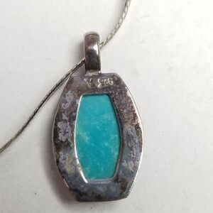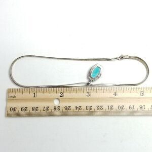 Vintage Blue Stone Sterling Silver Pendant on Long Flat Chain Necklace Tarnished
