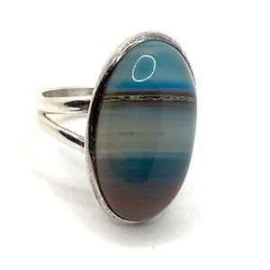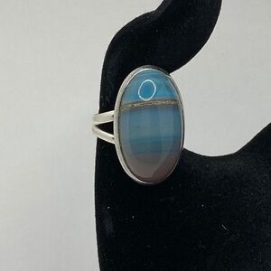 Vintage Blue Striped Agate 925 Sterling Ring 6.91g Size 8