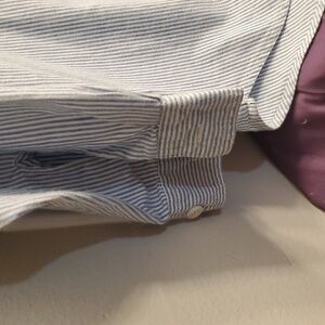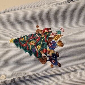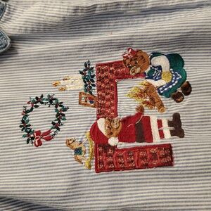 Vintage Blue Striped Christmas Themed Shirt with Denim Collar