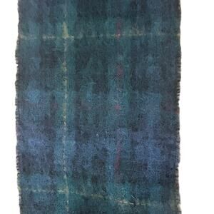 Vintage Blue Tartan Plaid Mohair Wool Scarf Made in Scotland -