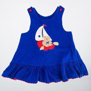 Description: Vintage Blue Textured Novelty Bear on a Boat Ruffle Dress - 4T
