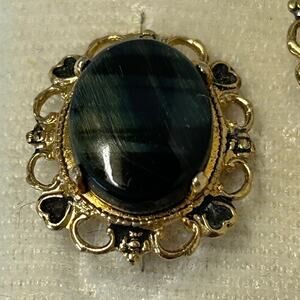 Vintage Blue Tiger Eye Screw Back Earrings NIB
