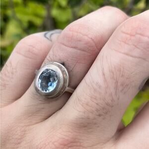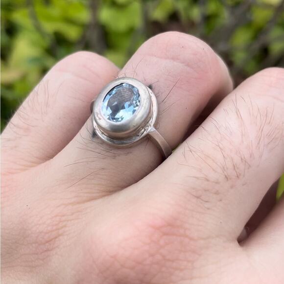 Beautiful Vintage Blue Topaz 925 Silver Ring. Size 7.5