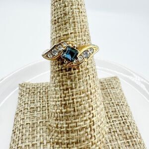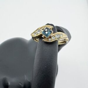 Featuring a stunning blue topaz gemstone surrounded by sparkling rhinestones, this piece exudes sophistication and timeless glamour. The adjustable band ensures a comfortable fit for any finger size. This is a perfect addition to any jewelry collection, whether it's for yourself or as a gift for someone special.