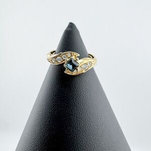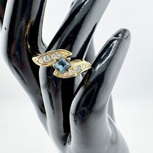 Vintage Blue Topaz Rhinestone Adjustable Ring Glamour Timeless Elegance Retro