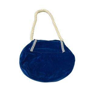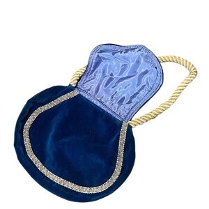 Tags- vintage, vintage accessories, vintage purse, vintage handbag, blue purse, velvet purse, retro purse, 1960s, 1970s,