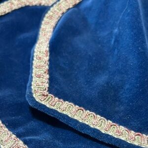 The exterior showcases a rich, luxurious velvet fabric adorned with an elegant embroidered design around the edges, adding a touch of sophistication and timeless charm.