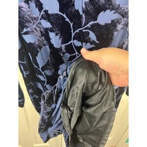 Vintage Blue Velvet Floral Burnout Long Sleeve Shift Dress Amanda Smith Size 10