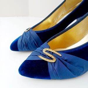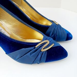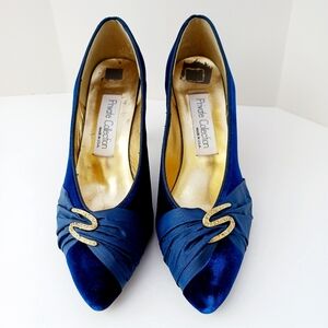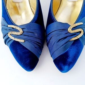 Vintage Blue Velvet Heels With Rhinestones Size 9
