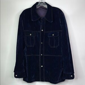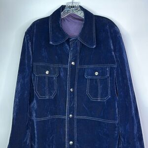 Vintage Blue Velveteen Snap Button Rockabilly Western Jacket Size Large 70s