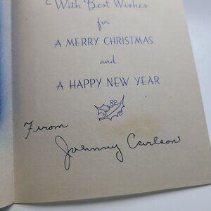 This enchanting vintage Christmas card features a serene winter landscape in blue and white tones. It's ideal for sending heartfelt holiday wishes with a nostalgic touch. The card includes a touching poem and a warm message, making it a charming keepsake for any recipient.