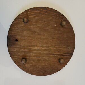 Minor scuffs on wooden frame. Diameter measures 9 inches.