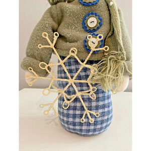 Vintage Blue, White & Green Fabric Snowmen Set With Glitter Snowflake