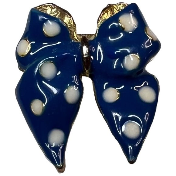Vintage Blue White Polkadot Bow Enamel Pin See Pictures for Condition