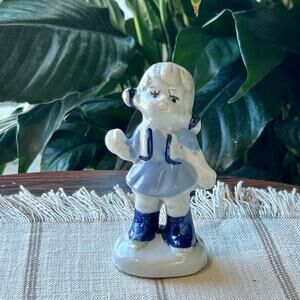 Vintage Blue White Porcelain Figurine of Little Holland Girl in Blue Dress