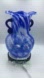 Vintage Blue White Swirl Cobalt Handled Vase Scalloped Edge. Vase is vintage pre-owned. Please see all photos for visible condition. No original box. Actual age is unknown but previous owner said before 9-11. Very unique and stunning vase! No noticeable chips/cracks but when I first got is I saw a minor scratched but when I went to take photos I couldn't locate it because of the design - so it is there somewhere blending in. Bubbles noticeable throughout. Approximately 10 inches tall x 7.5 inches wide medium to larger tabletop sized. Collectible glass art décor. Brand unknown.