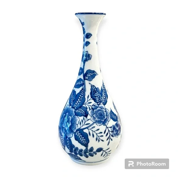 Vintage Blue & White Vase, Floral, Chinoiserie Grand Millennial Asian Chinese